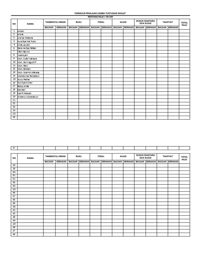Format Penilaian Lomba Wudhu Dan Sholat / 2 - Formulir penilaian lomba praktek wudhu nama :